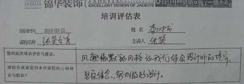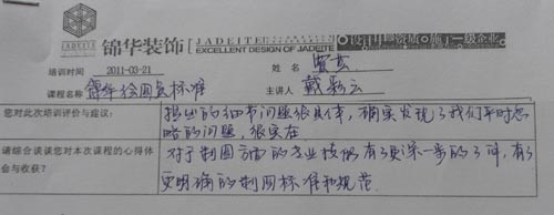 3月21日,公司在所有在編繪圖員和部分有潛力的實習(xí)生范圍中召開了一場繪圖員培訓(xùn)。本次培訓(xùn)由人力資源部牽頭,首先邀請了研發(fā)中心戴彩云老師對繪圖員的制圖規(guī)范和標準做了講解,對每季度繪圖員上繳作品情況也做了案例分析,其次是安排了主任設(shè)計師崔堯、高級設(shè)計師單清和堂杰工作室首席設(shè)計師張笑做了培訓(xùn)分享。最后由人力資源包總闡述了設(shè)計部儲備人才的“雛鷹計劃”的具體實施步驟及考核方案。優(yōu)秀的繪圖員作為錦華內(nèi)部的設(shè)計師儲備人員,將會在錦華這個優(yōu)秀的平臺上得以平穩(wěn)成長,錦華需要的是有志向、有方法、有心態(tài)的務(wù)實性人才,只要踏實認真一步一個腳印的遵循公司的成長體系,相信,“雛鷹”終將會成長為一只在錦華天空中自由翱翔“雄鷹”!