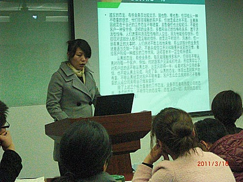 優(yōu)秀市場部經(jīng)理陶玲為新員工分享“如何贏得客戶”的營銷培訓(xùn)