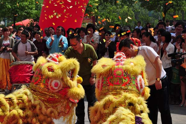 宋總和堂總為舞獅點(diǎn)金,寓意江北旗艦店開業(yè)大吉
