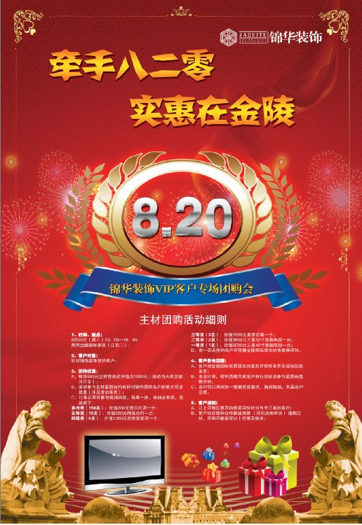 B、客戶須在錦華合作聯(lián)盟商家(詳見活動單頁)選購主材,否則不能享受以上優(yōu)惠及抽獎;