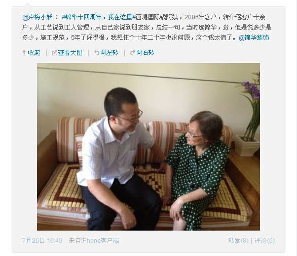 —西堤國際錢阿姨,06年選擇錦華裝修