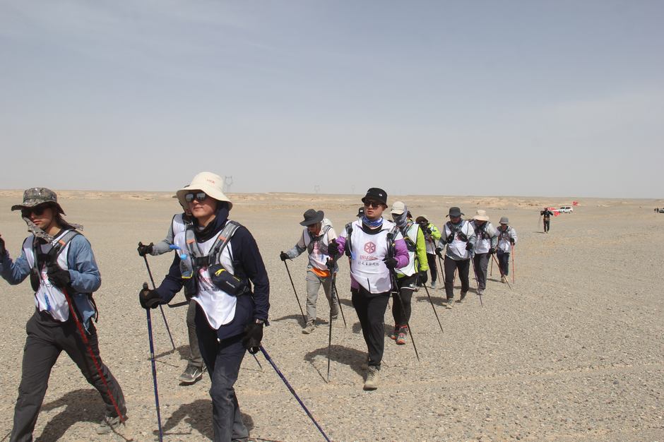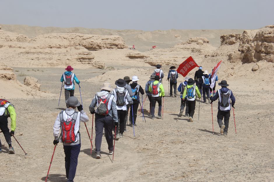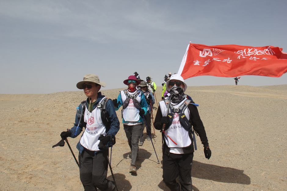 ▲從堿泉子到火燒湖,大漠戈壁50公里,兩天一夜徒步遠(yuǎn)征,伙伴們無一放棄,以堅強(qiáng)的意志完美抵達(dá)終點