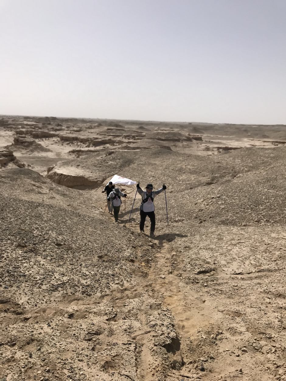 相比于城市里的溫潤,大漠戈壁里的天氣可謂是非常不友好,近40度高溫,伴隨著干燥與風(fēng)沙…兩天50公里徒步路,對于我們,不僅是生理上,更是心理上的挑戰(zhàn)!