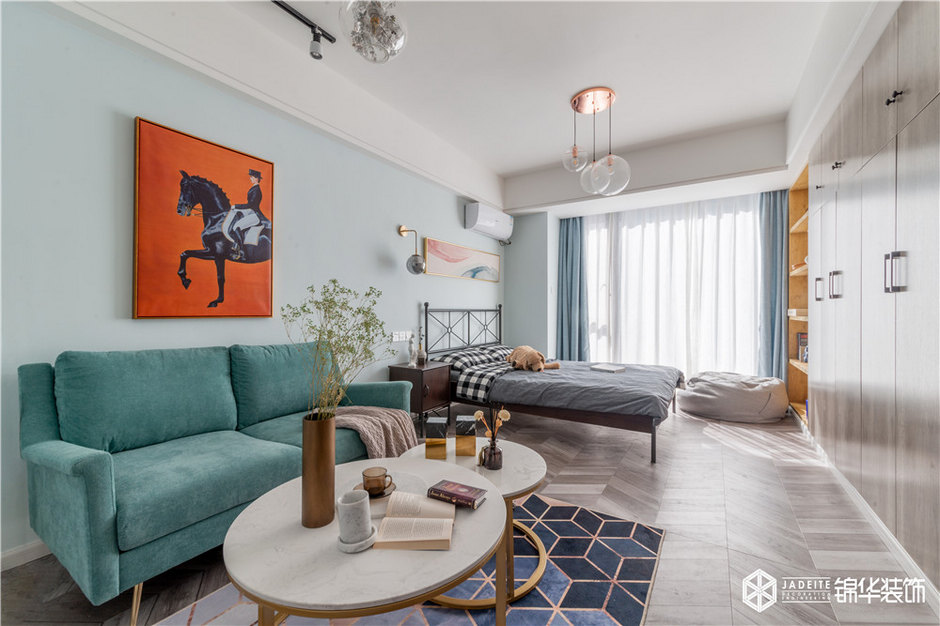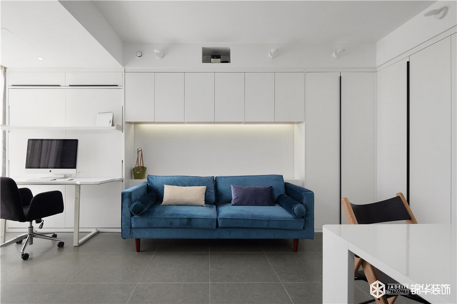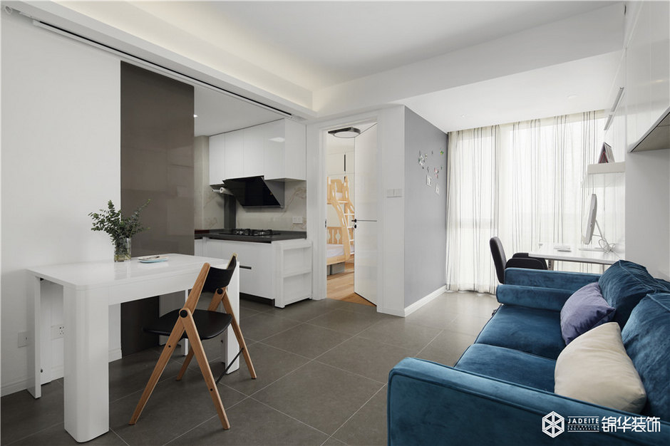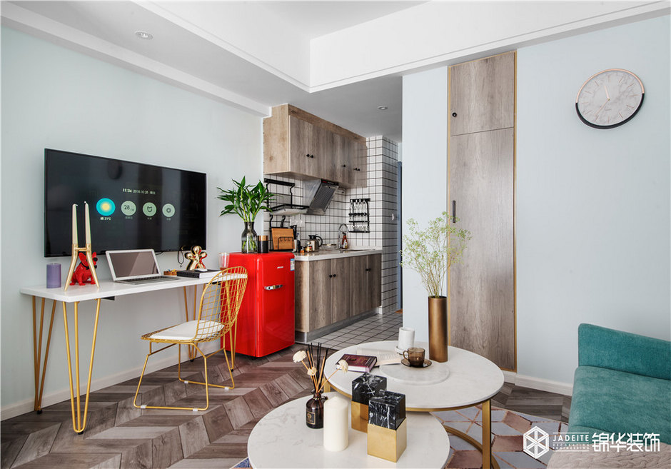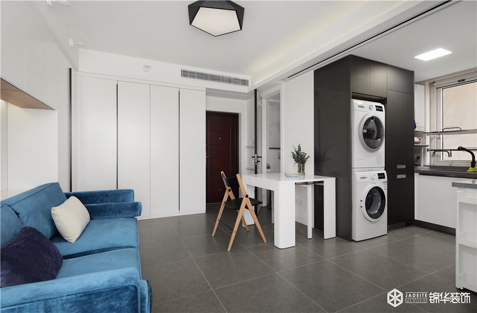 雖然本案是一個只有50平的公寓,但該有的功能全部具備,比如大型綜合儲物柜、全景書房、觀景飄窗閱讀臺、強(qiáng)大功能的廚房。