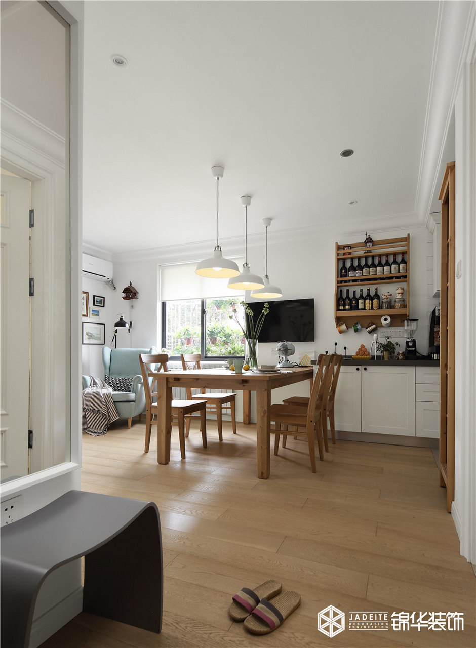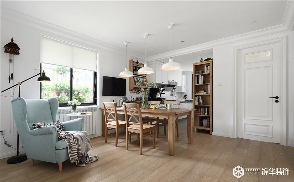 ▲受面積的限制,客餐廳采取大開間設(shè)計,中間沒有任何隔斷,使客餐廳之間自然連結(jié)過渡!