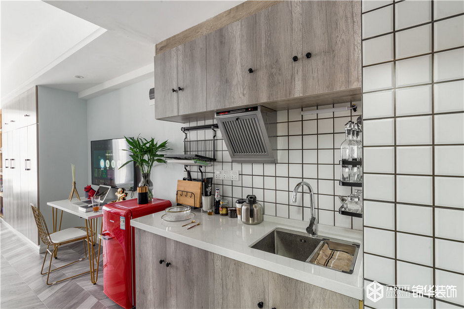 ▲廚房以白色調(diào)為主,并選用了經(jīng)典的小白磚,所以即使面積有限,卻格外清爽整潔!