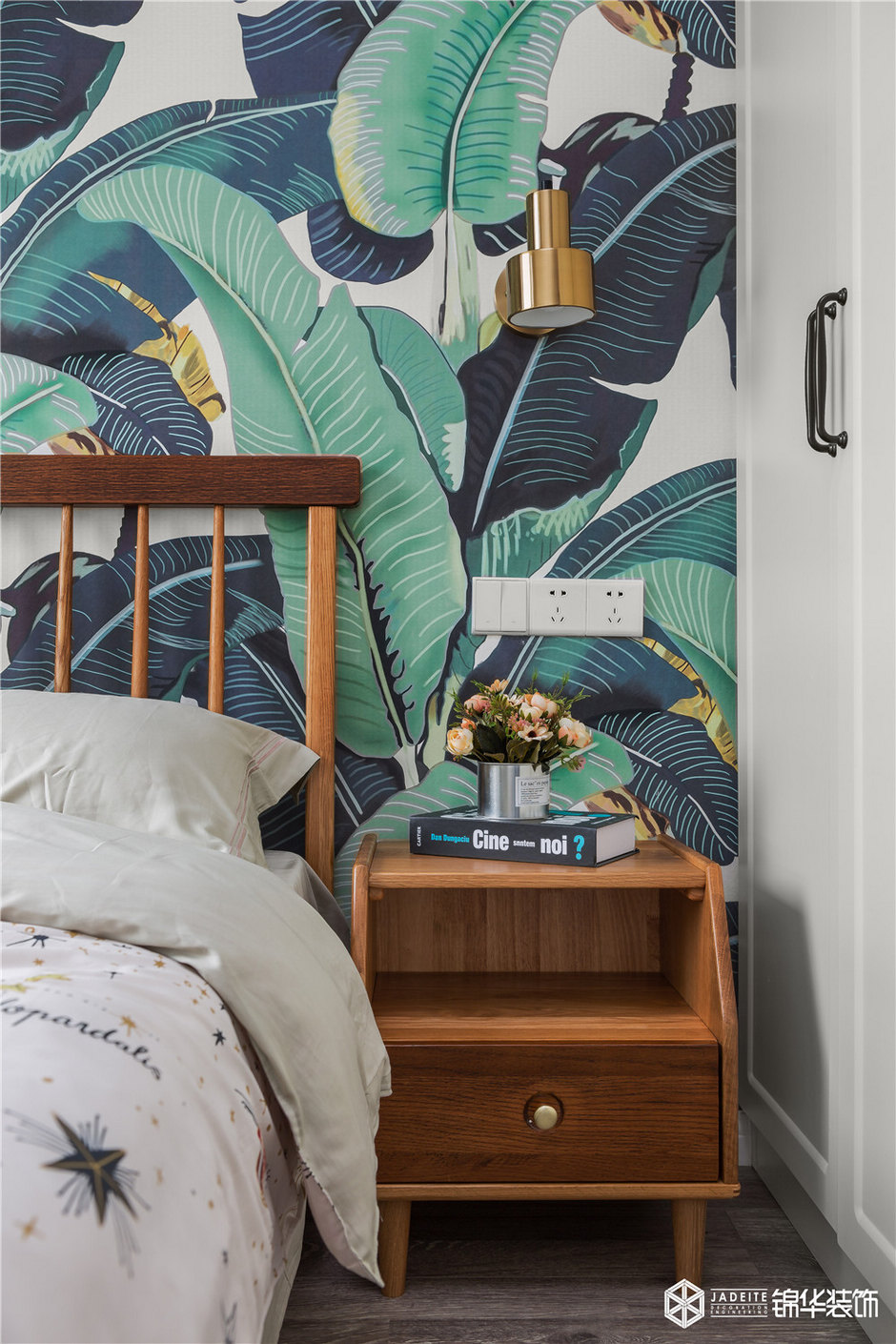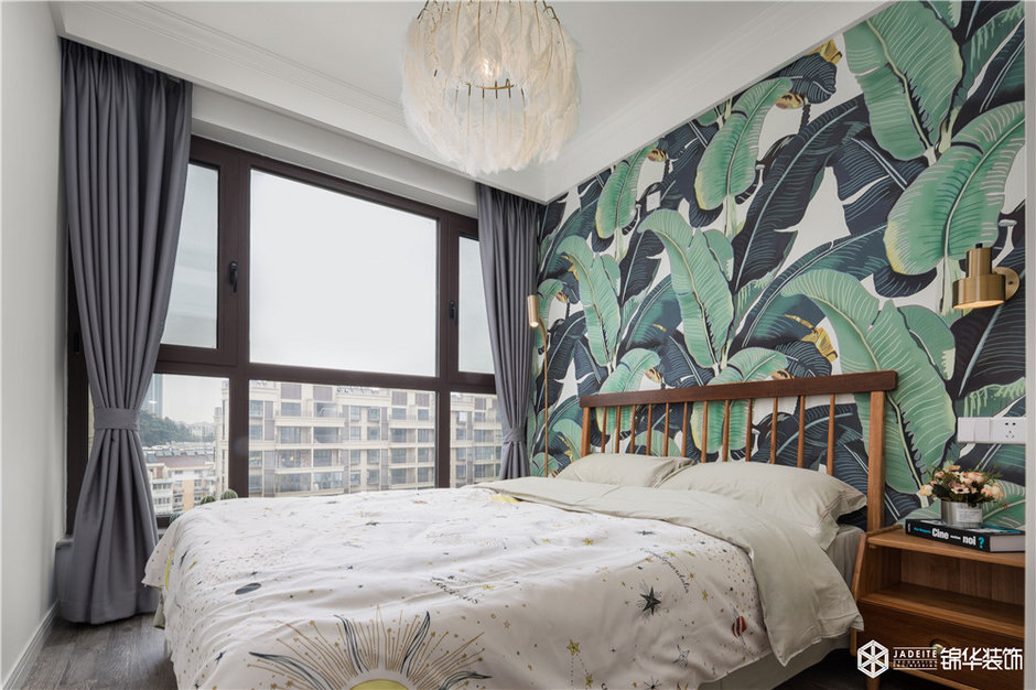 ▲綠色調(diào)的背景墻讓素雅的空間充滿活力,夢中好似也彌漫著自然味道!