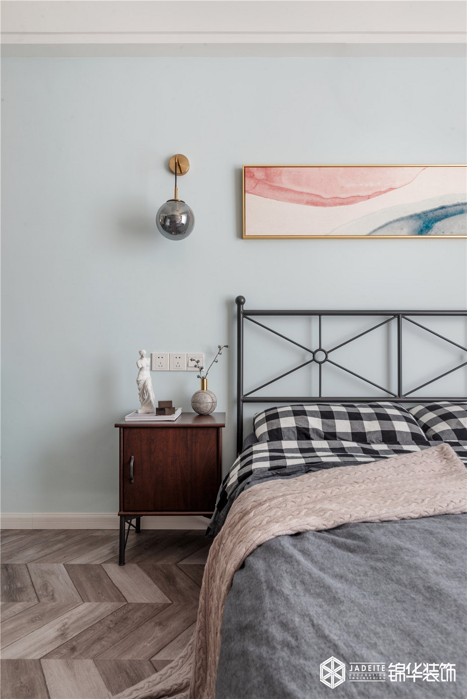 ▲休息的空間應(yīng)該給人安靜的視覺效果,所以臥室里,不管是床品、裝飾畫亦或其他飾品,都以素色為主。