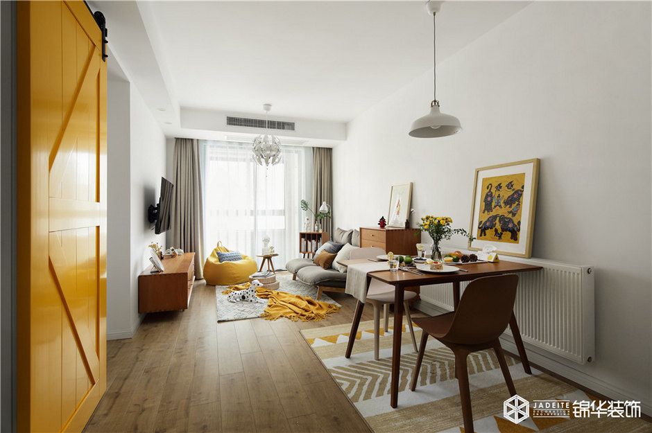 ▲色調(diào)以黃色、灰色、木色為主,溫暖又活潑。布藝、亞麻、木質(zhì)等天然材料的運(yùn)用,又為空間平添了一種慵懶的繾綣!