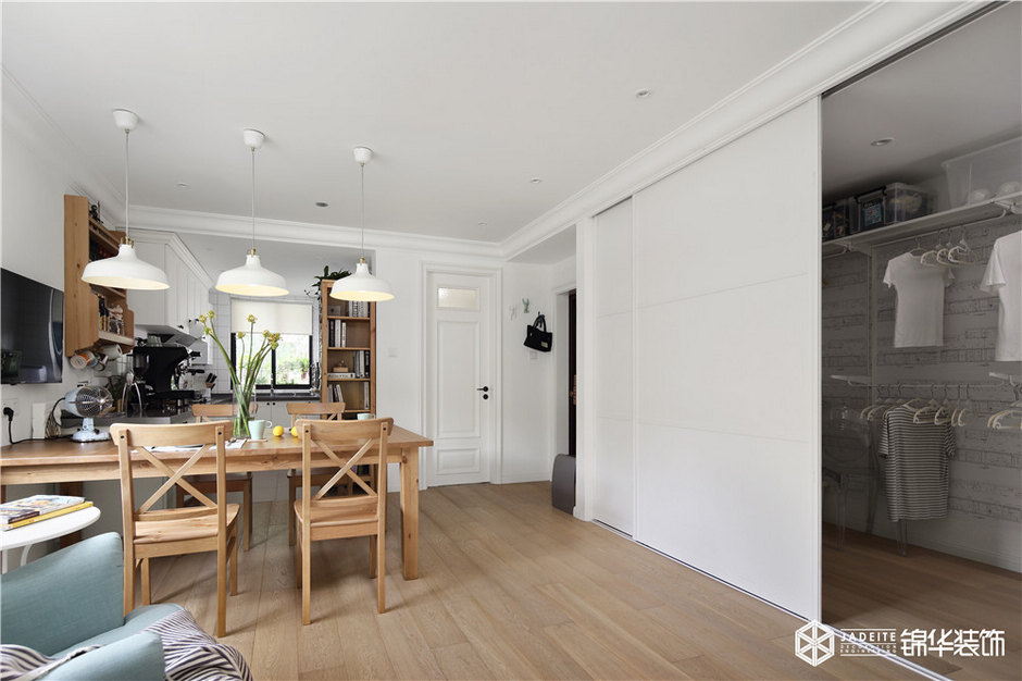 考慮到戶型南北通透,采光較好,在空間中沒有做特別大的改造變動,而是在儲藏等功能上做了不少改動。