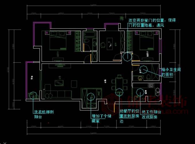 戶型缺點(diǎn):但是餐廳和廚房的關(guān)系過(guò)于松散,北面的工作陽(yáng)臺(tái)有點(diǎn)浪費(fèi),儲(chǔ)藏空間偏小,衛(wèi)生間過(guò)大。